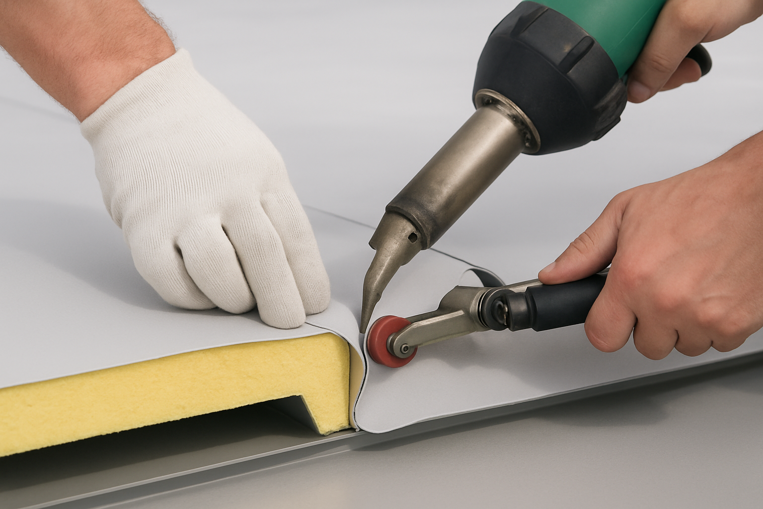 패널 외부를 TPO 시트로 씌우고, 열풍융착(Hot Air Welding) 방식으로 각 패널을 일체형으로 접합하기 때문에 방수 성능이 탁월합니다.