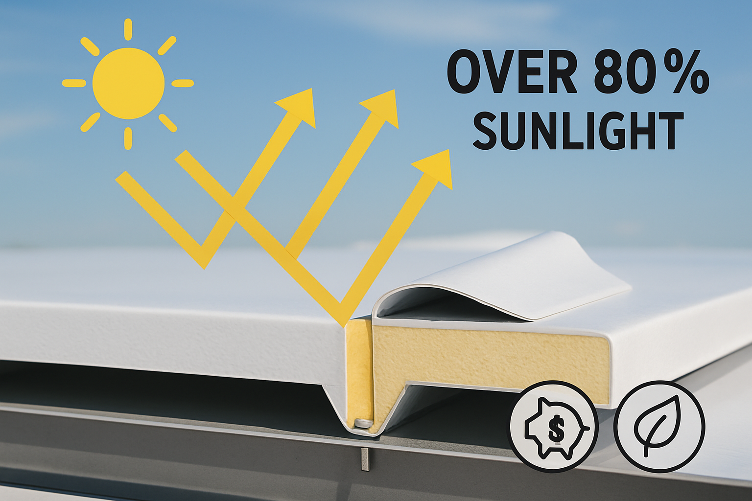 - 백색 TPO시트는 80% 이상 태양광 반사율로 열유입 최소화 → 냉방 에너지 절감