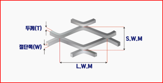 익스펜디드메탈은 목적(안전통로, 발판, 울타리 등)과 설계하중 조건에 따라 위 규격들을 적절히 선정해야 합니다.
