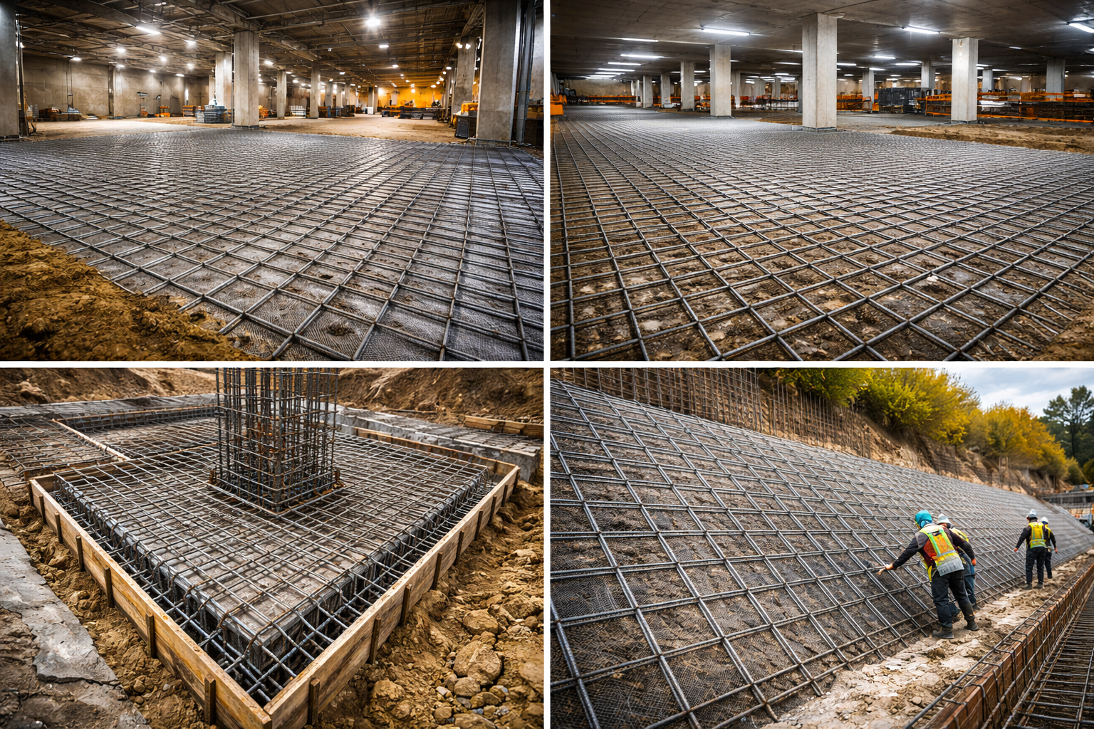 용접철망은 현대 건설에서 콘크리트 구조물의 균열 제어와 구조 성능을 동시에 만족시키는 핵심 보강재입니다. 바닥 슬래브, 기초, 옥상, 교량 바닥판 등 다양한 구조 부위에서 안정적인 성능을 발휘합니다.