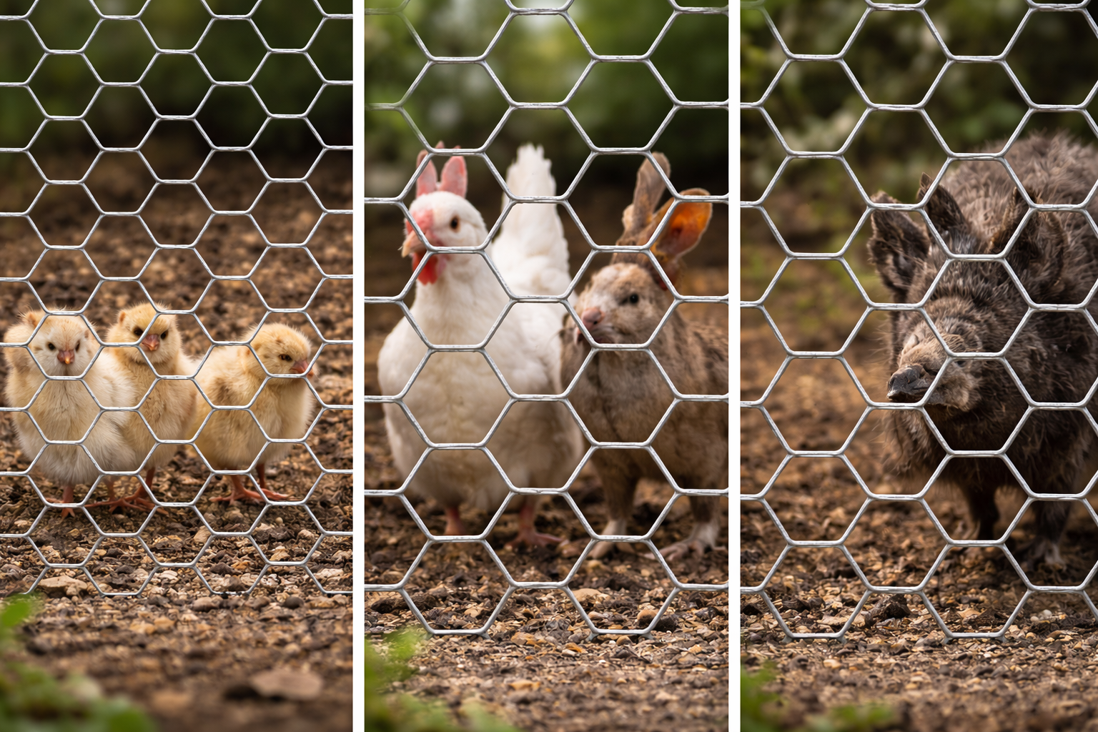많은 분들이 궁금해하시는 부분입니다. 사실 이들은 모두 육각형 철망이지만, 구멍 크기와 선 굵기에 따라 명칭과 용도가 달라집니다.