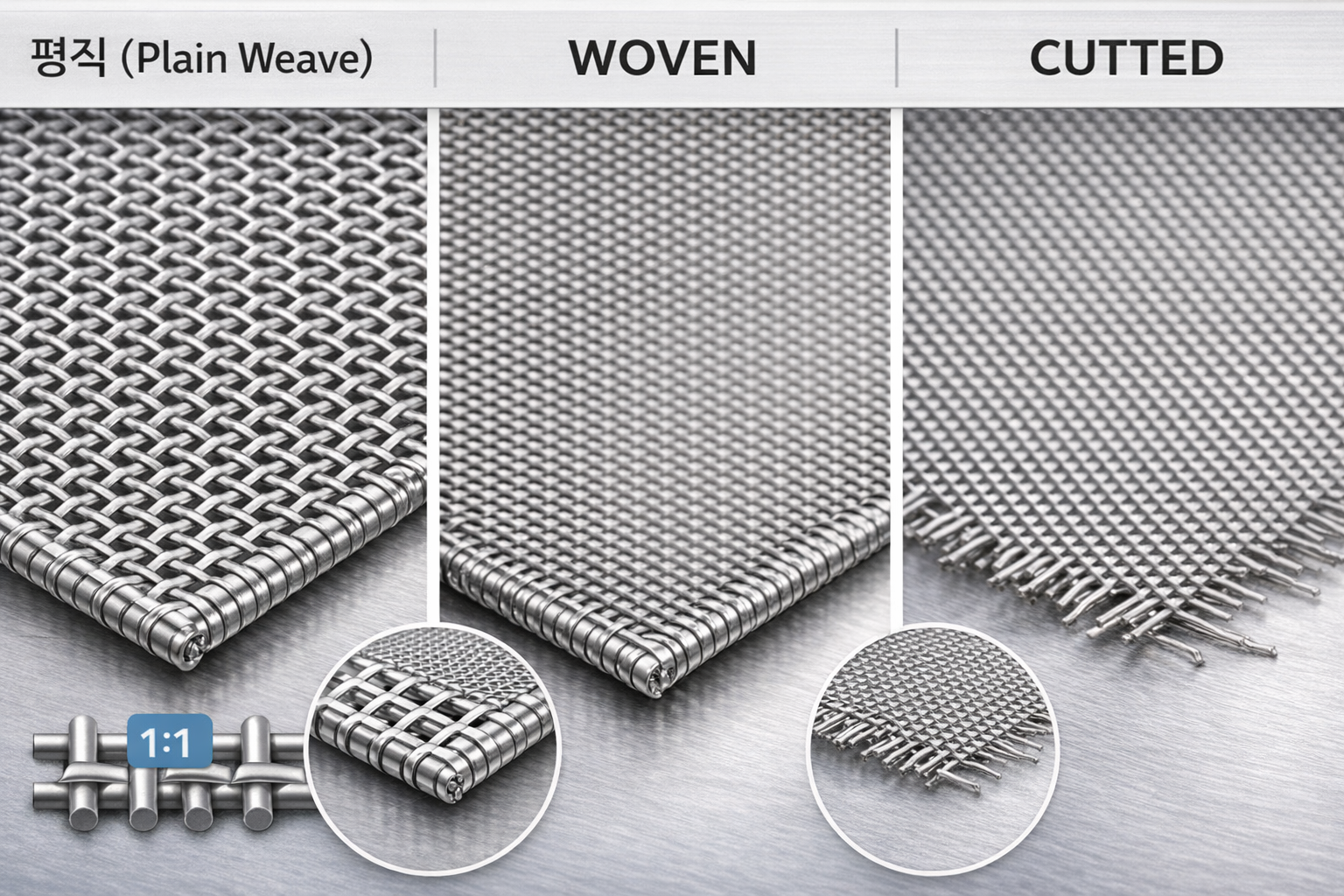 스텐방충망 제직 방식의 종류 — 평직·WOVEN·CUTTED 차이